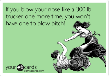Table Nose Blowers Where the HELL were you raised? Seriously. In what universe is it okay to do that? I can’t even type the words to express the revulsion I feel when I am eating (soundlessly, by the way, thank you) my Goddamn food and someone puts a tissue to their nose and blows out stuff from their insides. I can’t say this any other way: I fucking hate you, whoever you may be, in that moment. If I could throw my fork at your face, and get away with it, I swear I would. Shame on you and your ill bred ways.